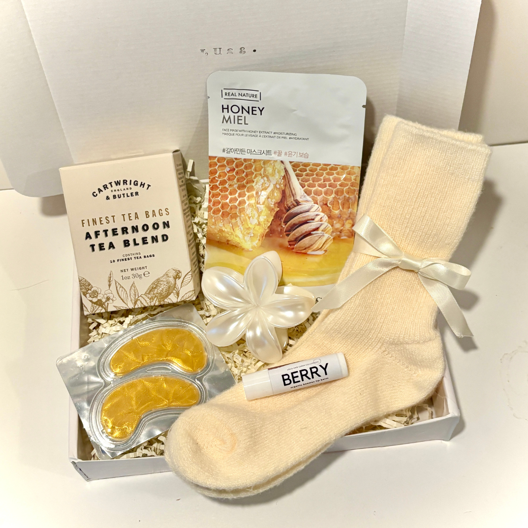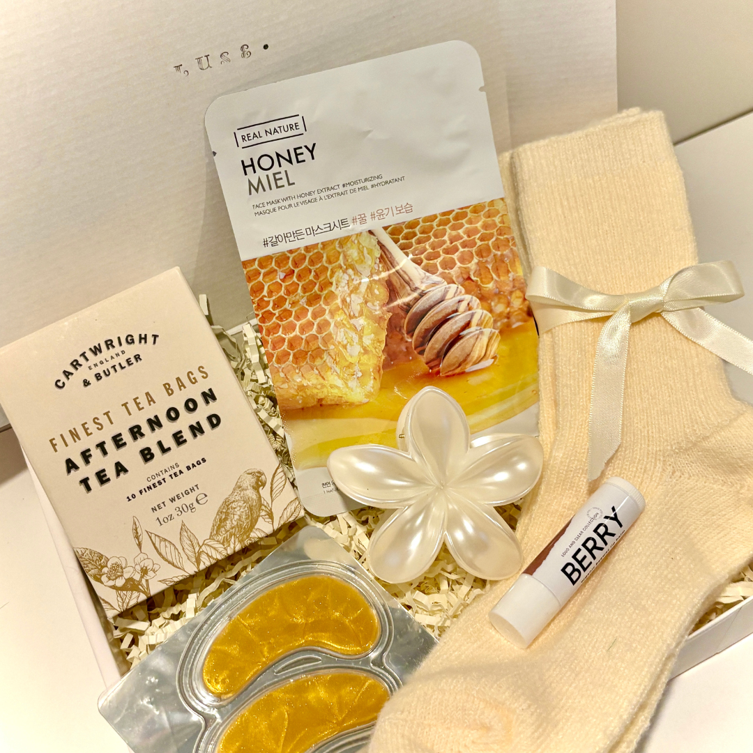 - A soothing mix of skincare, cozy wear, and a calming cup of tea